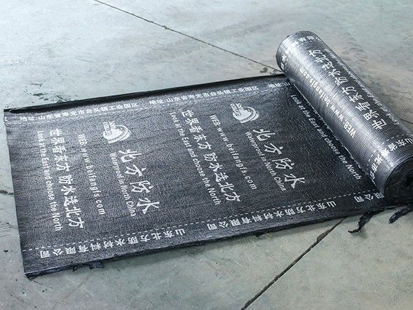 帶頁巖片卷材短邊搭接時要去掉頁巖層,方法是用火焰加熱后用抹子刮掉頁巖部分。也可以采用對接,方法是在接縫處下面墊300mm卷材條,卷材橫向?qū)樱涌p處用密封材料處理。